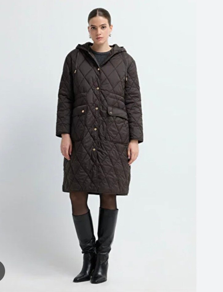 ADL Kapitone Kahverengi Uzun Kadın Mont