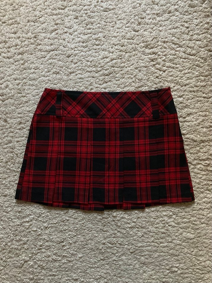 Kırmızı Ekose Pileli Mini Etek
