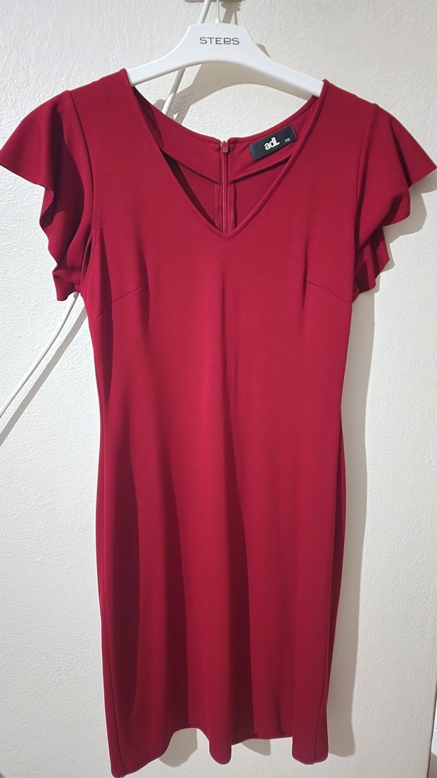 iyi durundsdir. kırmızı renk, V yakalı, kısa drapeli kollu, modern klasik stilde, romantik akşamlar için uygun, vücuda oturan midi elbise. ❤️