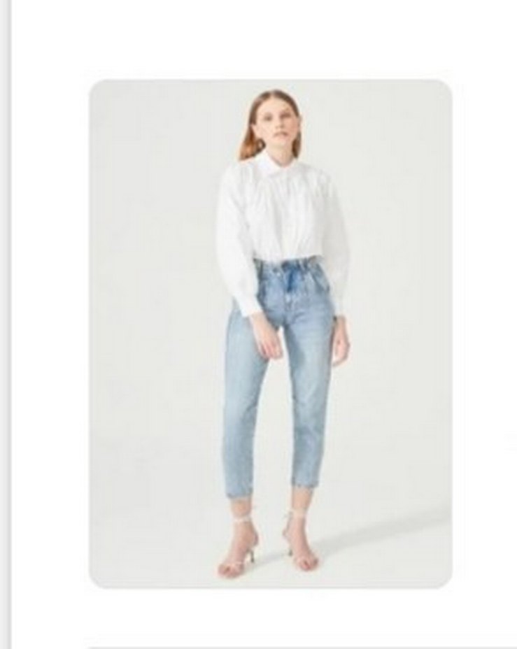 Beyaz kot pantolon, bağlamalı bel ve hafif batik desenle bol kesim. Kısa boy, gündelik kullanım için uygundur. adl xs beden Jean pantolon ürün bir kez kullanılmıştır