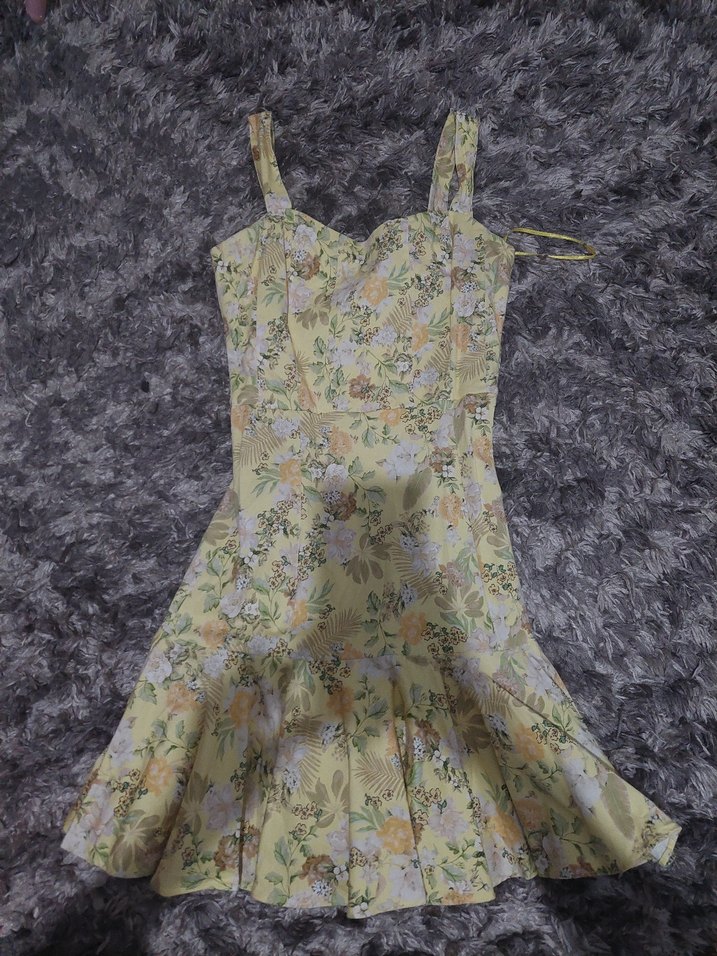 Adl marka, xs beden esnek kumaş, eteği çan, askıları düğmeli ayarlanabilir, kemerli, mini elbise