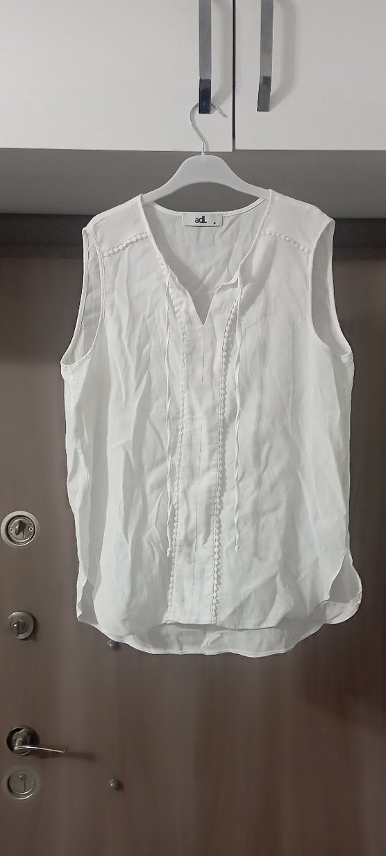 Beyaz kolsuz, V yakalı keten bluz, rahat kesimi ve bohem tarzıyla günlük kullanıma uygundur.Temiz ve şık
