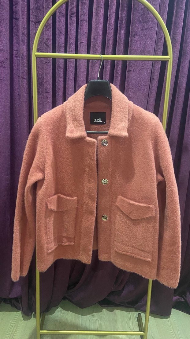Uzun kollu, düğmeli, yakalı ve cep detaylı pembe kısa kadın ceketi, yumuşak ve sıcak kumaştan üretilmiştir. Rahat kesimiyle günlük sokak stiline uygundur.