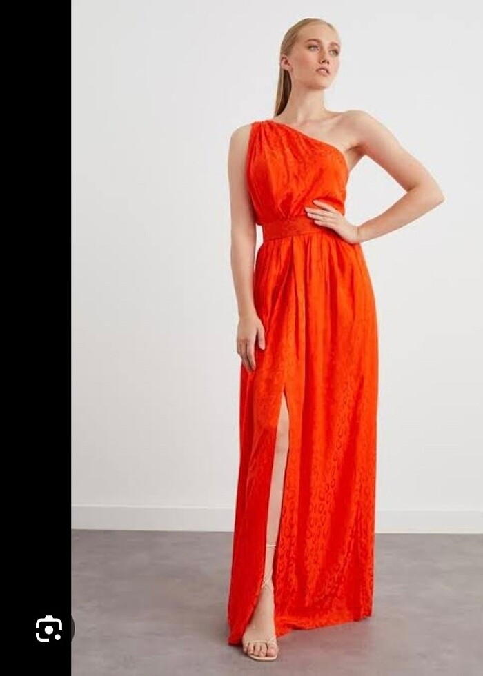 ADL Mert Aslan tek omuzlu pileli kemerli elbise