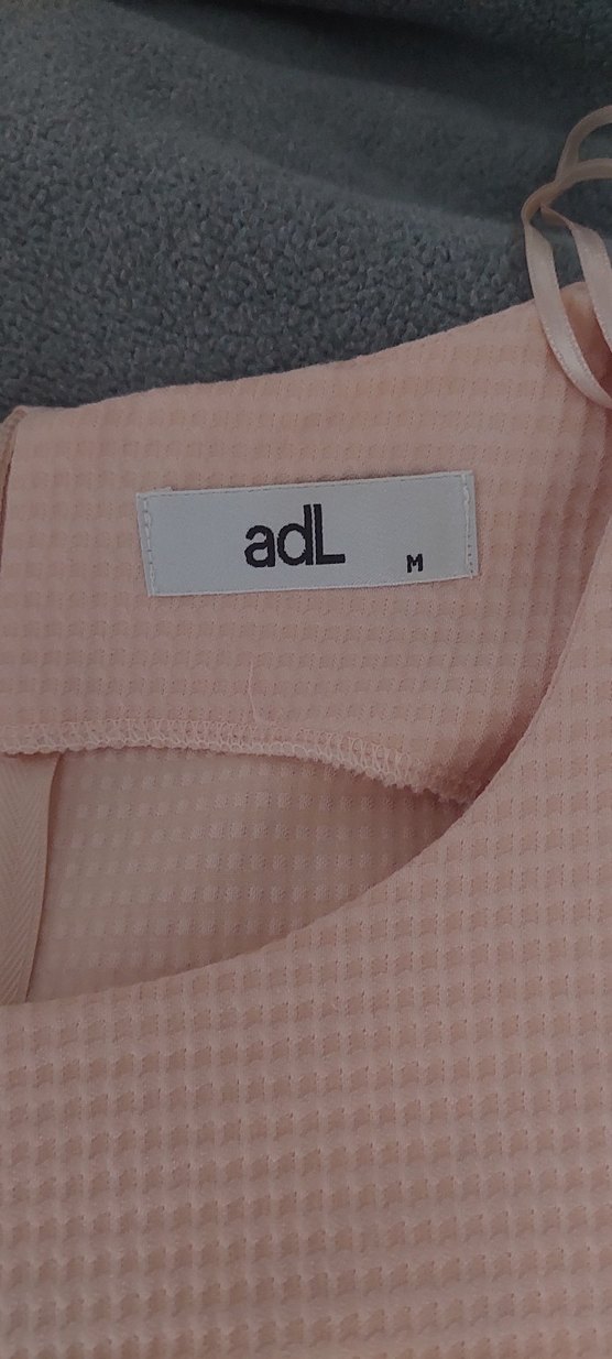 adL marka, fermuar detaylı, kolsuz, tekne yaka, baskılı, pembe elbise. Normcore ve athleisure tarzında, midi boy ve sentetik kumaştan üretilmiştir.