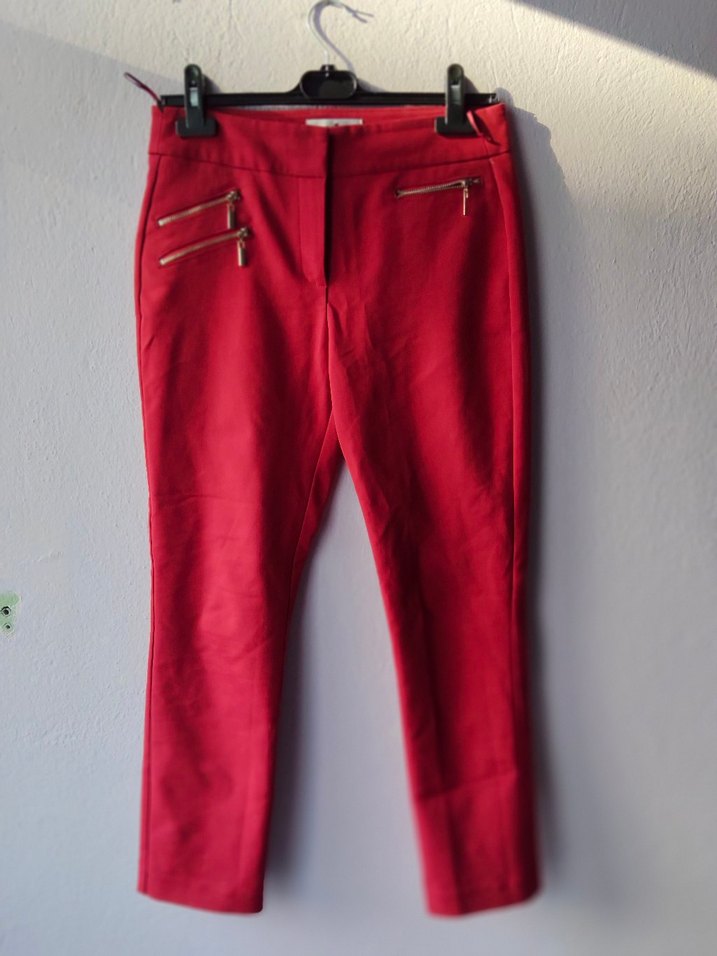 Fermuarlı detaylara sahip kırmızı süet, midi boy, dar kesim kadın pantolon. Parlak dokusu ile modern ve şık bir görünüm sunar. esnek ve harika bir renk bel 38 cm basen 48 cm boy 88 cm