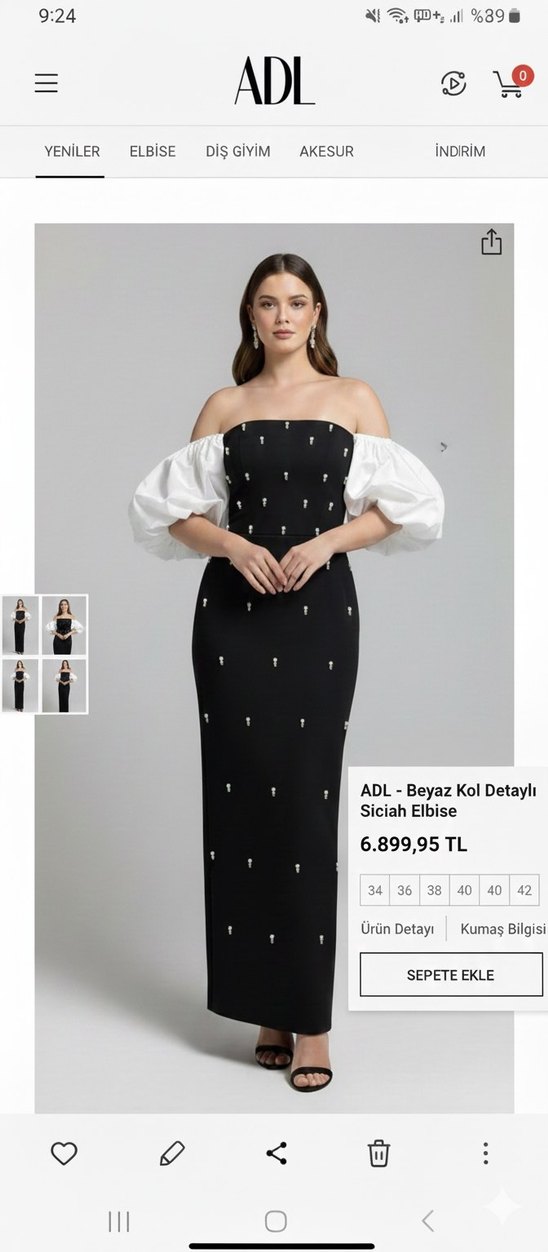 Siyah uzun straplez elbise, beyaz kabarık kol detayları ve boncuk işlemeleriyle düğünler için göz alıcı goth tarzı sunar. ✨