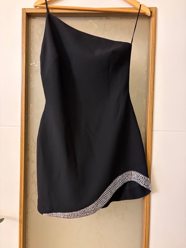 adl siyah taşlı kısa elbise