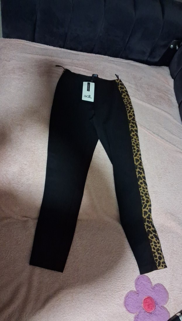 Adl siyah tayt kenarları leopar desenli şeritli xs esneme payı var kaliteli toka kumaş kalın toparlar vücudu 59cm bel çevresi. 87cm boyu