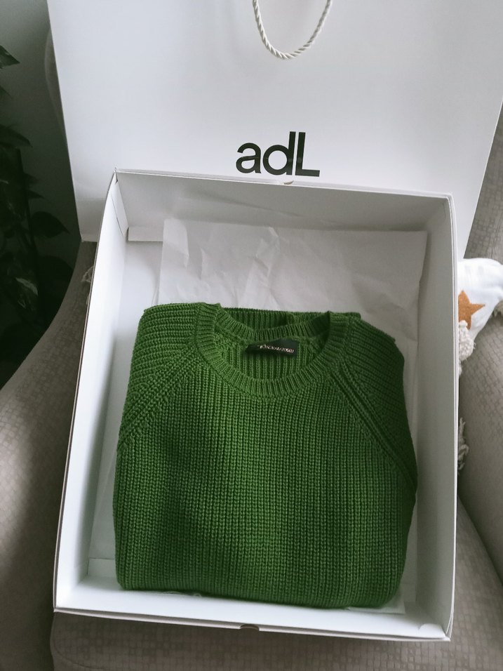 Yeşil renkte, triko kumaştan, yuvarlak yaka ve uzun kollu, bol kesim adL kazak. Parlak ve sade dokusuyla günlük rahatlık sunar.urun sıfır kollar yırtmaçlı fiyat son