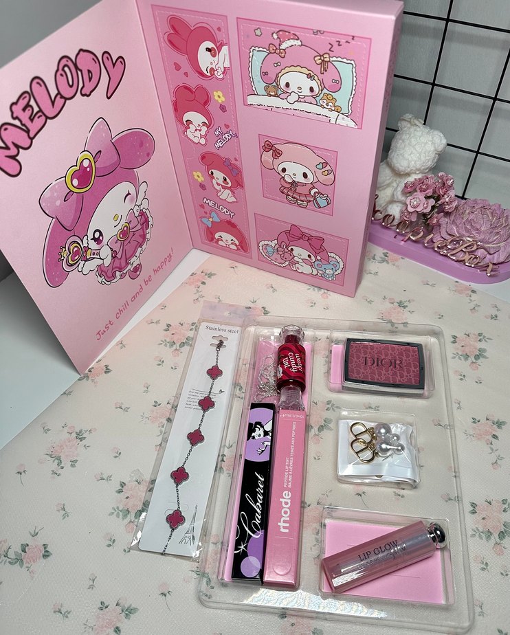1. Çelik bileklik 2. Mascara 3. Çelik kolye 4. Dior allık 5. Lip Glow 6. Küpe 7. Lip tint 8. Rhode gloss