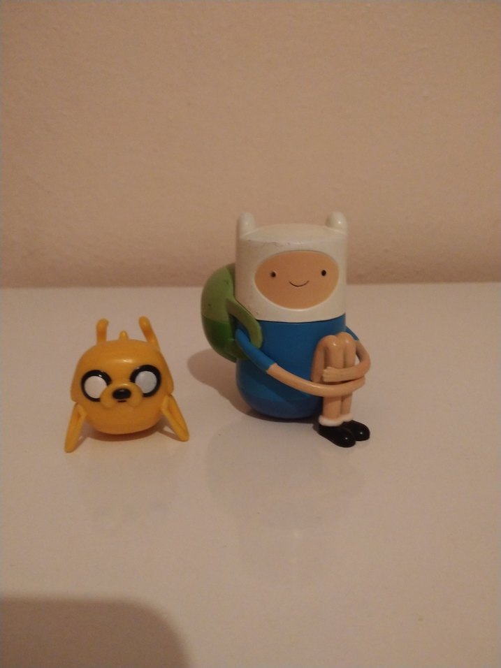 Adventure Time'dan Finn ve Jake'in açık sarı renkli iki figüründen oluşan set. Canlı renkler ve detaylı yüz ifadeleri içerir. İkisi birlikte fiyatıdır. Gayet iyi durumdalar.