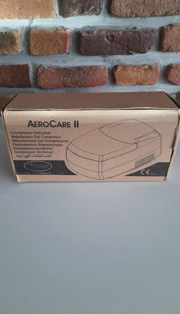 AeroCare II, kompresörlü nebulizatördür. Kişisel bakım için tasarlanmış, kompakt ve camel-gri renktedir.