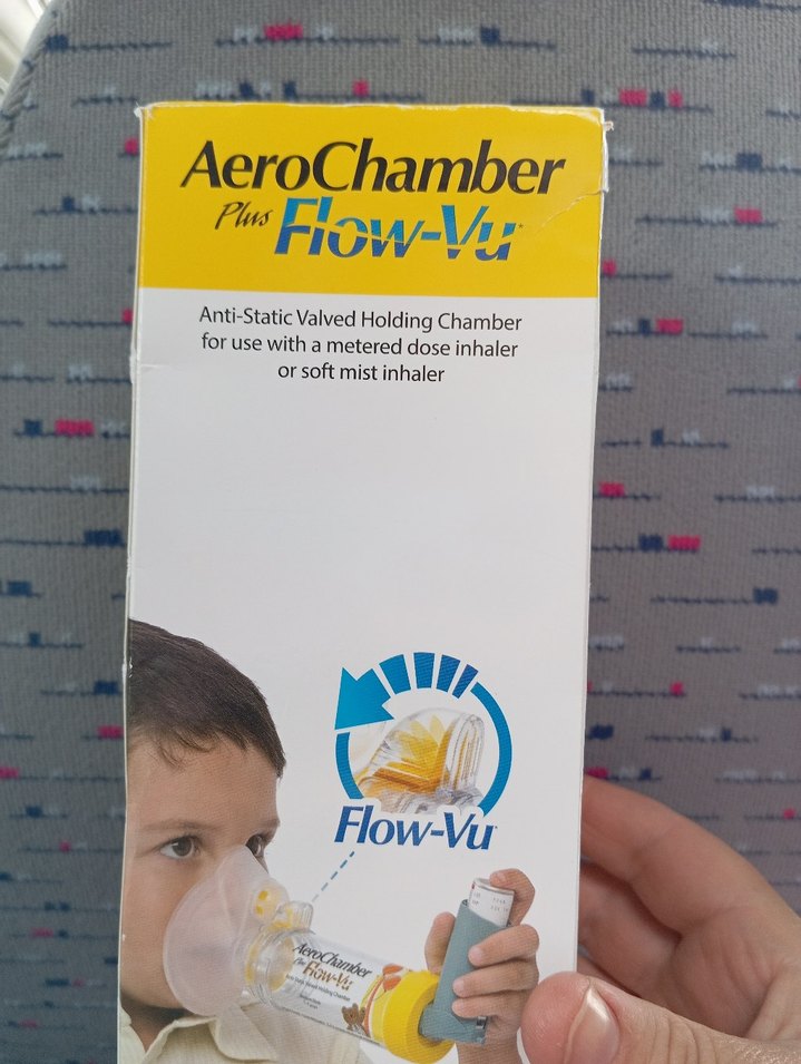 AeroChamber Plus Flow-Vu, metered dose veya soft mist inhaler ile kullanım için sarı renkli anti-statik valfli inhaler odasıdır.