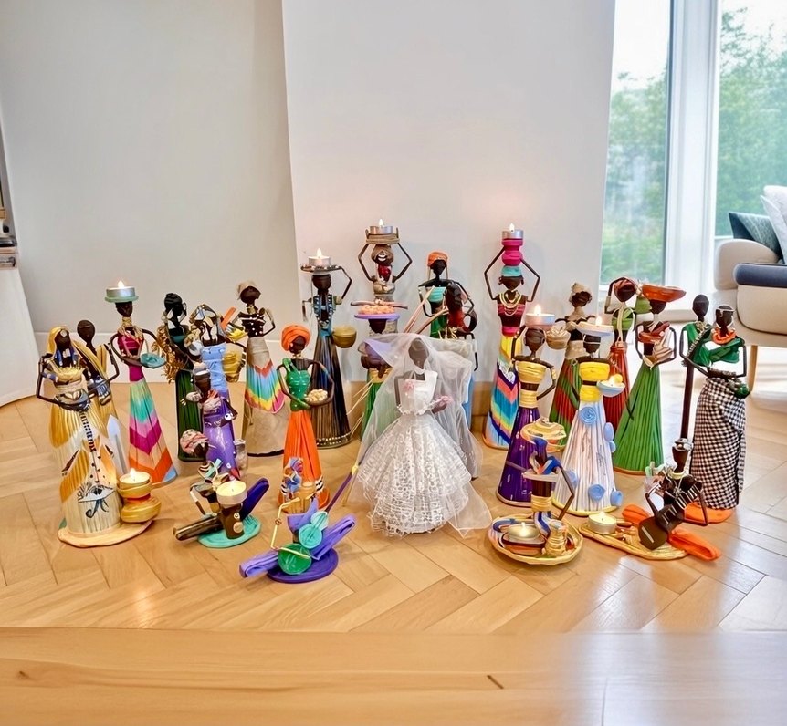 Ürün bazlı stok fiyat sormanızı rica ederim . Kişiye özel El yapımı , çoğu Mumluk tealight, Boyları ortalama 26/32 cm enleri yaklaşık 10 cm. tamamı geri dönüşüm malzemelerinden oluşan yapımı günlerce süren, harika hediyelik afrikalı biblo dekorasyon ev iş yeri ofis kullanımına uygun uzun yıllar dikkat çekecek ve herkes nereden aldığınızı soracak . Korunaklı olarak gönderilecektir sayfamda farklı ürünler de mevcuttur . #bohem #retro #biblo #afrikalıkadın #elemeği #handmade #ofishediye #afrikalıbebek #afrikalıbiblo