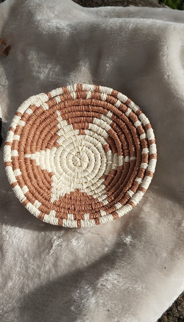 Açık kahverengi ve krem renklerde yıldız desenli örgü dekoratif tabak, doğal bir dokunuş sağlar. Kağıt ip ile örülmüştür. ölçüsü 17 cmdir. Tek fiyatıdır. ikili ve Daha fazla set olarak da satılmaktatır . set alımları için iletişime geçelim. Fotoğraf bana aittir