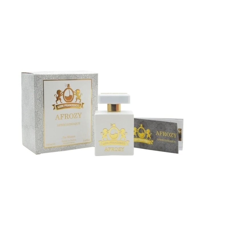 AFROZY kadın parfümü, şık beyaz ve altın renkli şişesi ve zarif ambalajıyla dikkat çeker. Hoş kokusuyla özel bir deneyim sunar.