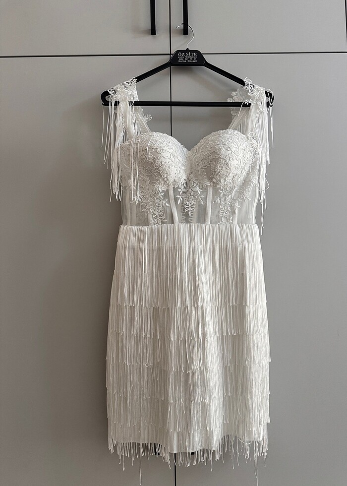 Kadıköy Lenta Moda elbisesidir. 36 beden. Kınada 1 saat, çekimde 1 saat kullanıldı. Kuru temizleme yapıldı. Hiçbir sorunu yoktur. (1.65 boy 58 kg iken giydim.)
