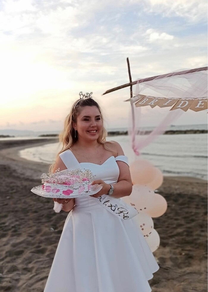 1 kez giyildi kolları çıkartılabilir.Arkası bağcıklı Hiçbir sorunu yoktur.Özel dikim