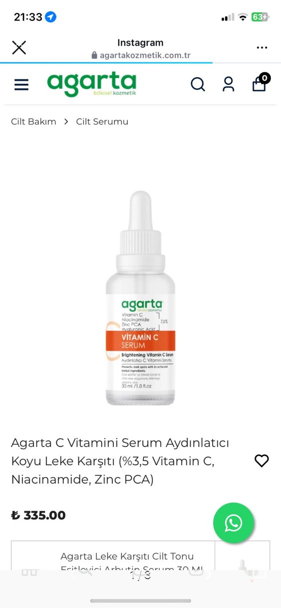 Agarta C Vitamini Serum, %3,5 Vitamin C, Niacinamide ve Zinc PCA ile cildi aydınlatır, koyu lekelerin görünümünü azaltmaya yardımcı olur.