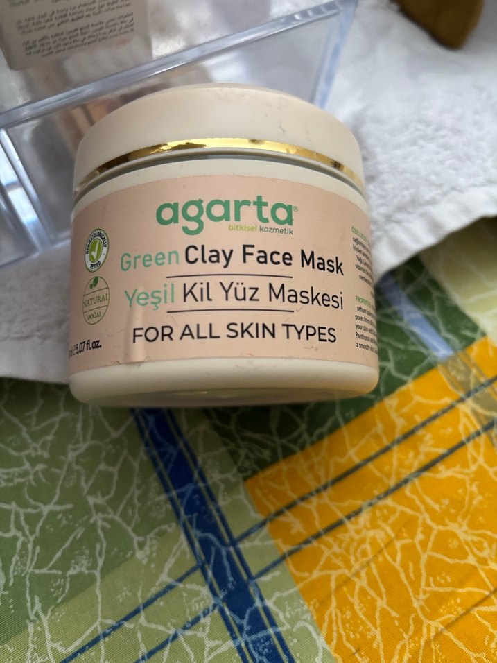 Agarta Yeşil Kil Yüz Maskesi, tüm cilt tiplerine uygun, cildi temizleyip yenileyen doğal içeriklerle hazırlanmıştır. Bir kez kullandım