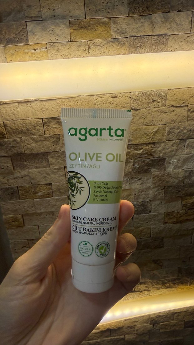 Agarta zeytinyağlı cilt bakım kremi, ozon yağı, zeytin yaprağı özü, panthenol ve E vitamini ile elleri besler.