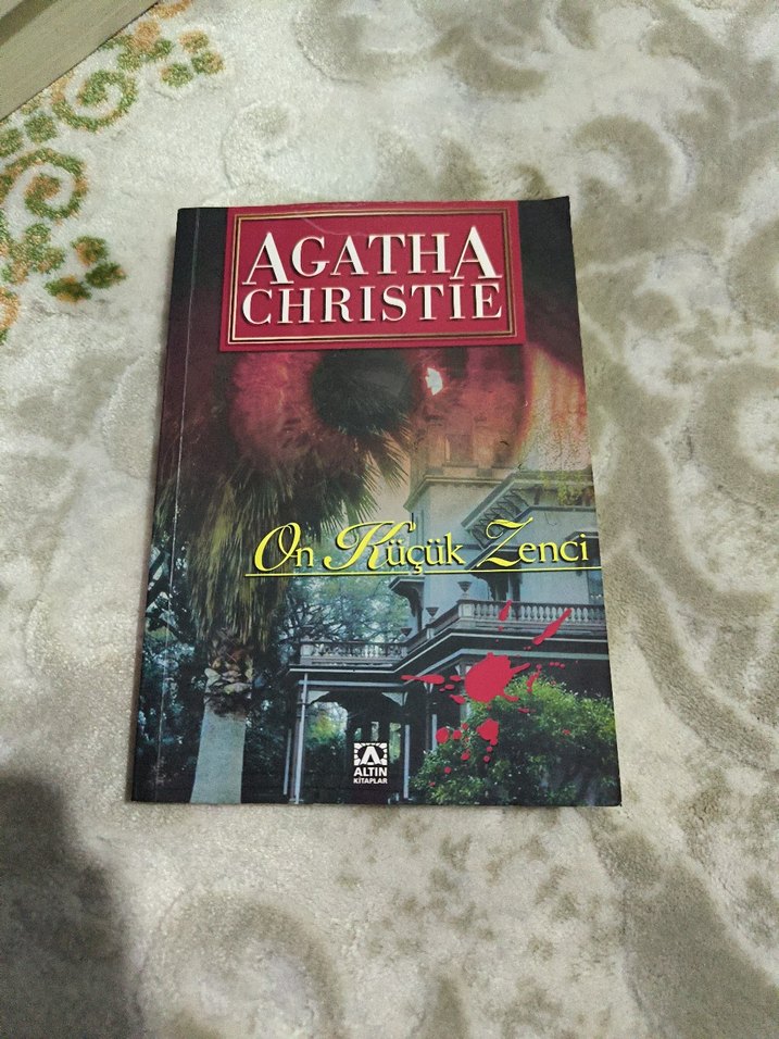 Agatha Christie'nin "On Küçük Zenci" adlı romanı, sürükleyici bir gizem ve gerilim atmosferi sunuyor. Kitap kapağında dikkat çekici görseller yer alıyor.