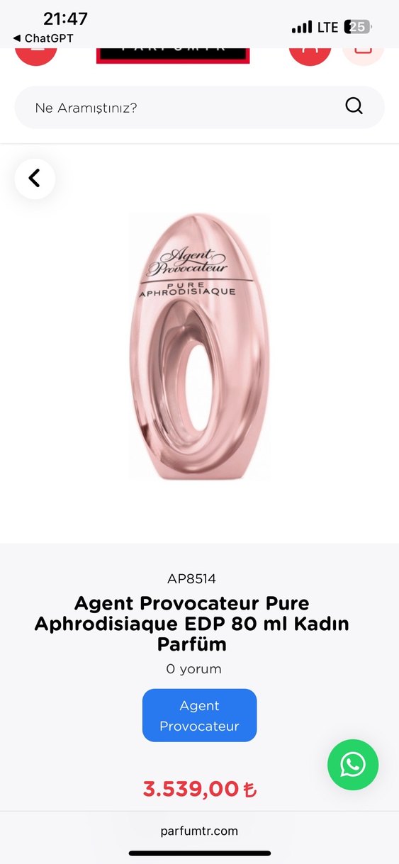 Agent Provocateur Pure Aphrodisiaque, 80 ml kadın parfümü, şık tasarımlı şişede büyüleyici koku sunar.
