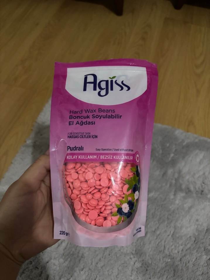 Agiss pudralı boncuk soyulabilir el ağdası, hassas ciltler için kolay ve bezsiz kullanım sağlar. 220 gram. Ürünün yarısı kullanıldı