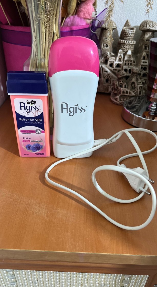 Agiss markasının roll-on ağda ısıtıcısı ve lavanta kokulu pudralı ağda, pratik ve etkili tüy alma sağlar. ️