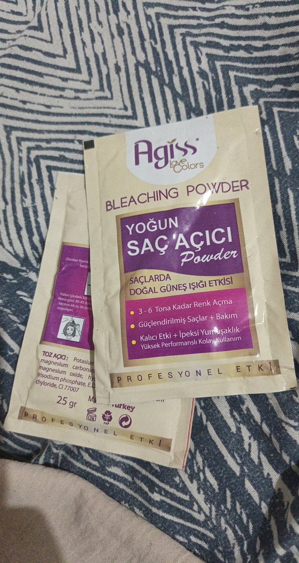 Agiss yoğun saç açıcı toz, saçlarda doğal güneş ışığı etkisiyle 3-6 tona kadar renk açar, saçları güçlendirir ve bakım sağlar. kutusuz gönderilecektir. oksidan alıp açabilirsiniz saçlarınızı tanesi 70 2 tane alacaksanız 120 tl yaparım ikisini