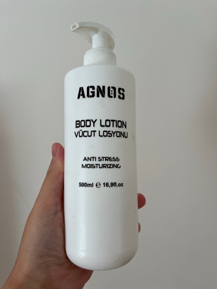 Agnos markasına ait, 500ml hacminde, anti-stres ve nemlendirici özelliklere sahip vücut losyonu. Cildi nemlendirir ve rahatlatır. 75 dolu Takas