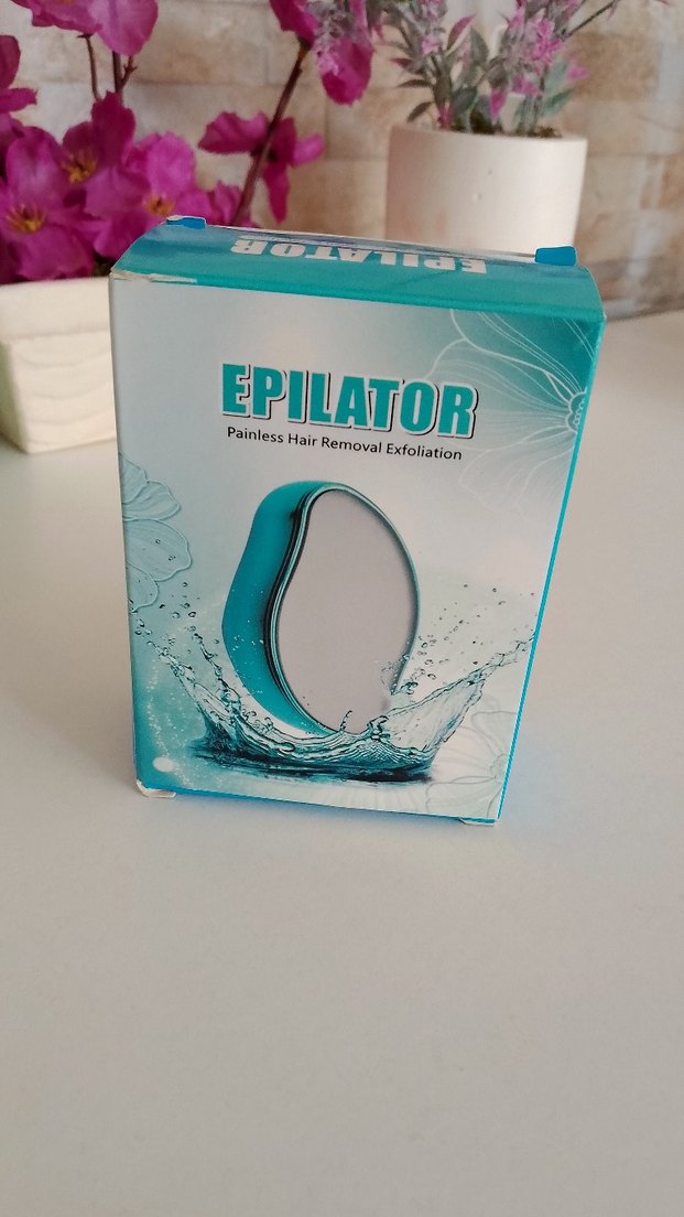 Turkuaz renkte, ağrısız tüy alma ve peeling için tasarlanmış epilatör. Cilt bakımını kolay ve nazik şekilde sağlar.