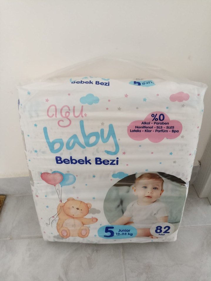 12-25 kg bebekler için Agu Baby Junior bebek bezleri, 82 adet. Alkol, paraben ve zararlı kimyasallar içermez.