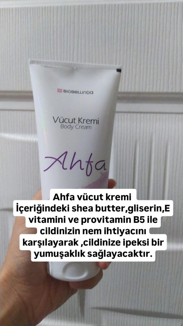 Ahfa vücut kremi, shea butter, gliserin, E vitamini ve provitamin B5 ile cildinizin nem ihtiyacını karşılayarak cildinize ipeksi bir yumuşaklık sağlar.