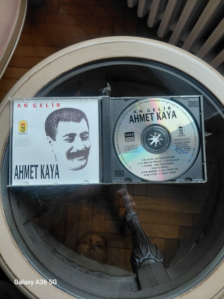 Ahmet Kaya'nın "An Gelir" CD albümü, üzerinde sanatçının portresi bulunan klasik kapak ve şarkı listesi içerir.