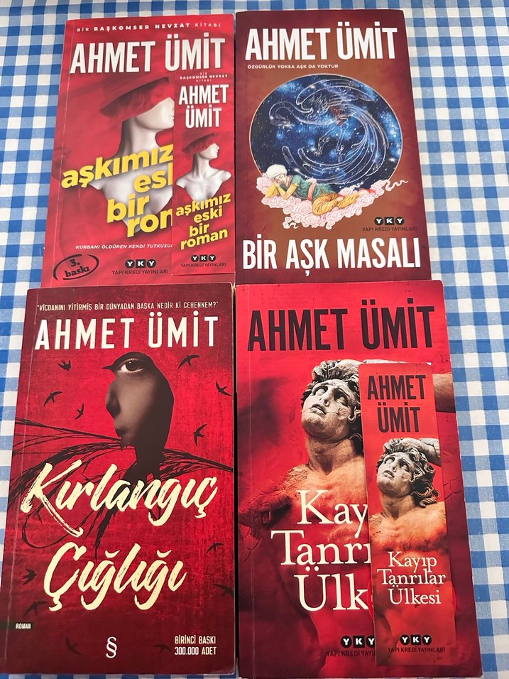 Ahmet Ümit'in 'Aşkımız Eski Bir Roman,' 'Bir Aşk Masalı,' 'Kırlangıç Çığlığı' ve 'Kayıp Tanrılar Ülkesi' adlı dört romanından oluşan set.