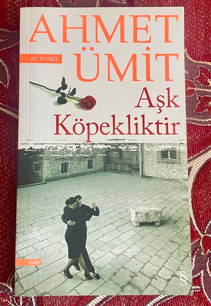 Ahmet Ümit'in 6. baskı romanı 'Aşk Köpekliktir'. Kapakta bir çift avluda dans ediyor, başlık üzerinde kırmızı bir gül var.