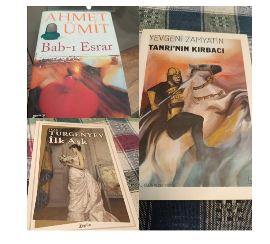 Ahmet Ümit, Ivan Turgenev ve Yevgeni Zamyatin'in tarih ve klasik edebiyat kitapları bir arada. Kapaklar detaylı illüstrasyonlar içerir.