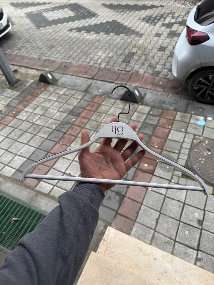 Adet fiyatı 15 TL Gri renkte, metal kancalı sağlam ahşap askı, çeşitli kıyafetler için uygundur.