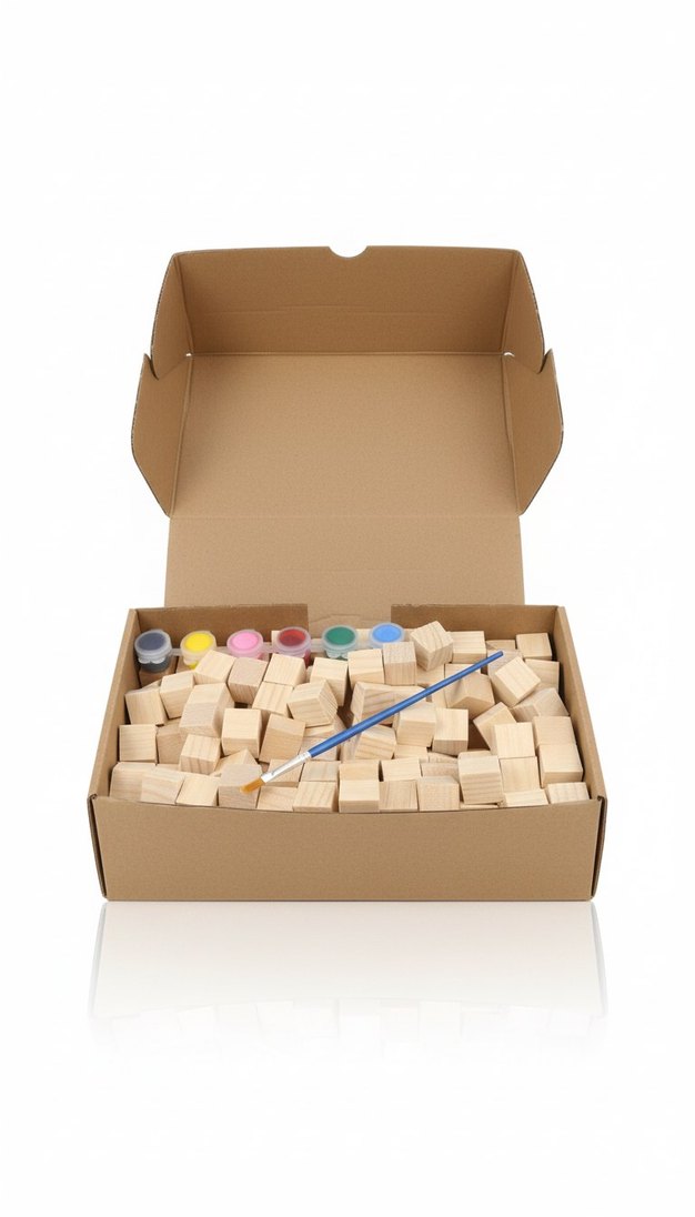 Çocuklar için ahşap bloklar, boya kapları ve fırça içeren boyama seti. Açık deve renkli bloklar ve canlı boya seçenekleri. 300 adet fiyat gayet makul Teklif kabul etmiyorum internette bin TL ve üzeri arastirabilirsiniz