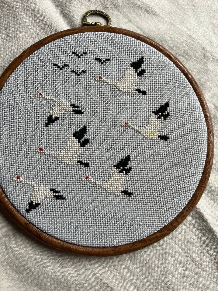 Ahşap Çerçeveli Kuş Desenli Kanaviçe