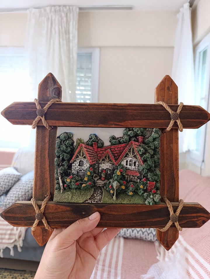 Ahşap Çerçeveli Oyma Taştan Köy Evi Tablosu