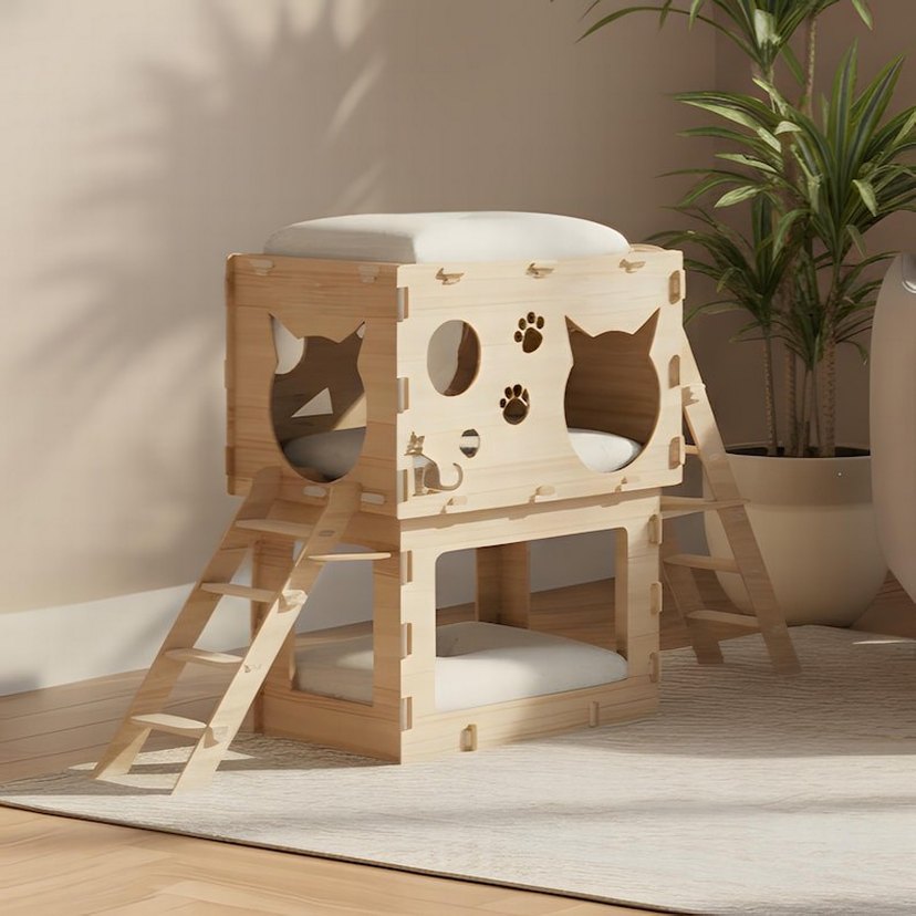Ahşap Çok Katlı Kedi Evi ve Tırmanma Platformu Özel Tasarım
