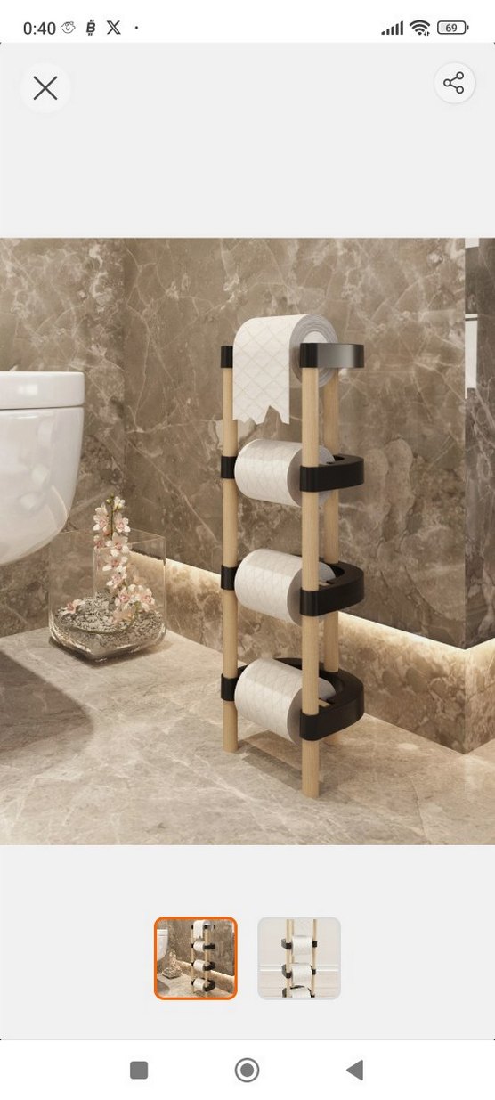 siyah ve ahşap renkte, çoklu tuvalet kağıdı rulolarını dikey olarak tutan, alan tasarrufu sağlayan şık düzenleyici. az kullanıldı. yer sıkıntısından dolayı satıyorum