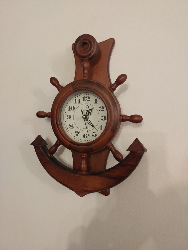 Ağır masif ahşap dümen şeklinde ve alt kısmı çapa görünümlü çalışır vaziyette kusursuz kaliteli duvar saatidir.Bir adet kalem pil ile çalışmaktadır.Ürünün Boyu 33 Eni 25 Cm'dir.Saat kısmı camdır.Özenle paketlenecektir.Diğer İlânlarımı İncelemeyi Unutmayınız.