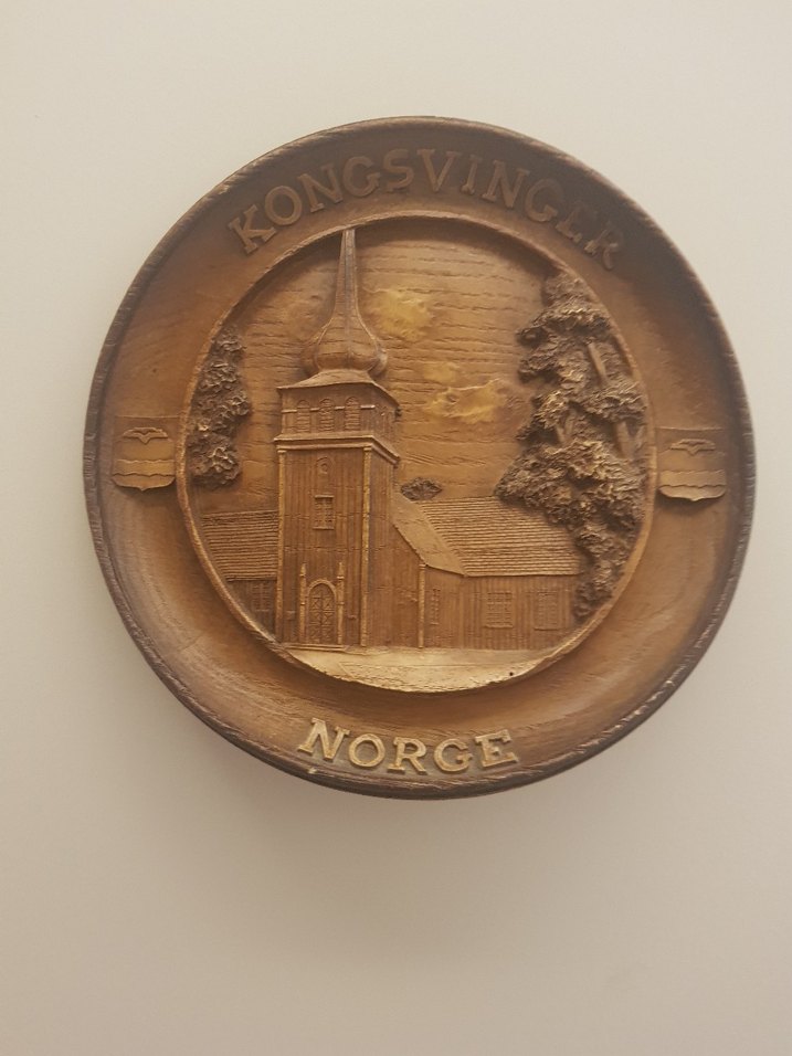 Ahşap el oyma 21 cm duvar tabağı oyma bir kilise ve "KONGSVINGER NORGE" yazısı içerir. Geleneksel, eski tarzda ve "NORCE" yazılıdır. ️