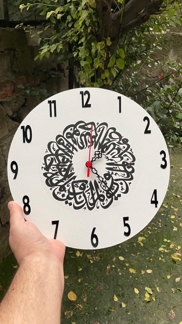 Boyut : Çap: 32cm Kendi el boyaması Ahşap ürünlerimiz beyaz duvar saati, siyah rakamlarla net okunur. Kırmızı saniye kolu bulunur.