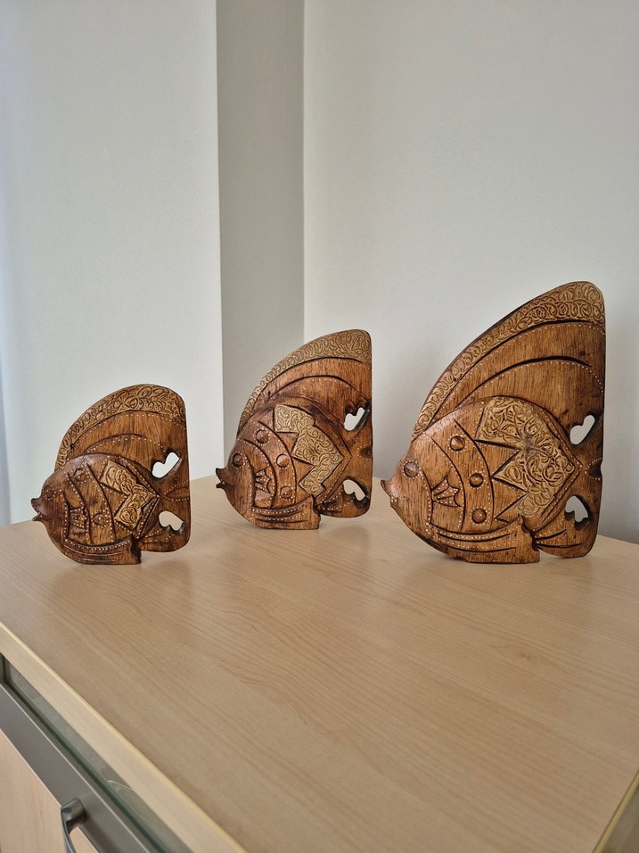 Ahşap El işçiliği Bereket ve Şans Balık Figürleri Seti