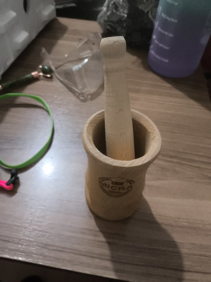 Bej renkte, mutfakta malzemeleri ezin ve öğütün diye tasarlanmış ahşap havan ve tokmak seti. Pürüzsüz yüzey ve sağlam yapıya sahiptir. Az kullanılmıştır.